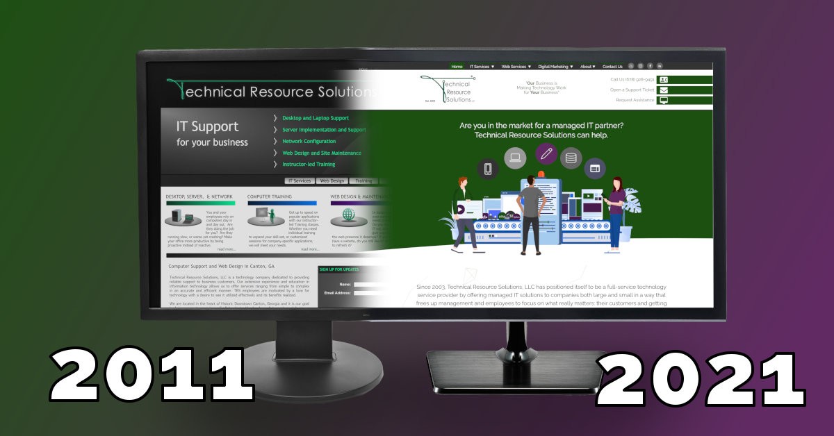 Technology and trends change – we see it happening every day and that hasn't changed for thousands of years. Website design trends have changed dramatically, requiring that many people update their websites. Below, we've included an image of the Technical Resource Solutions website in 2011 versus 2021.